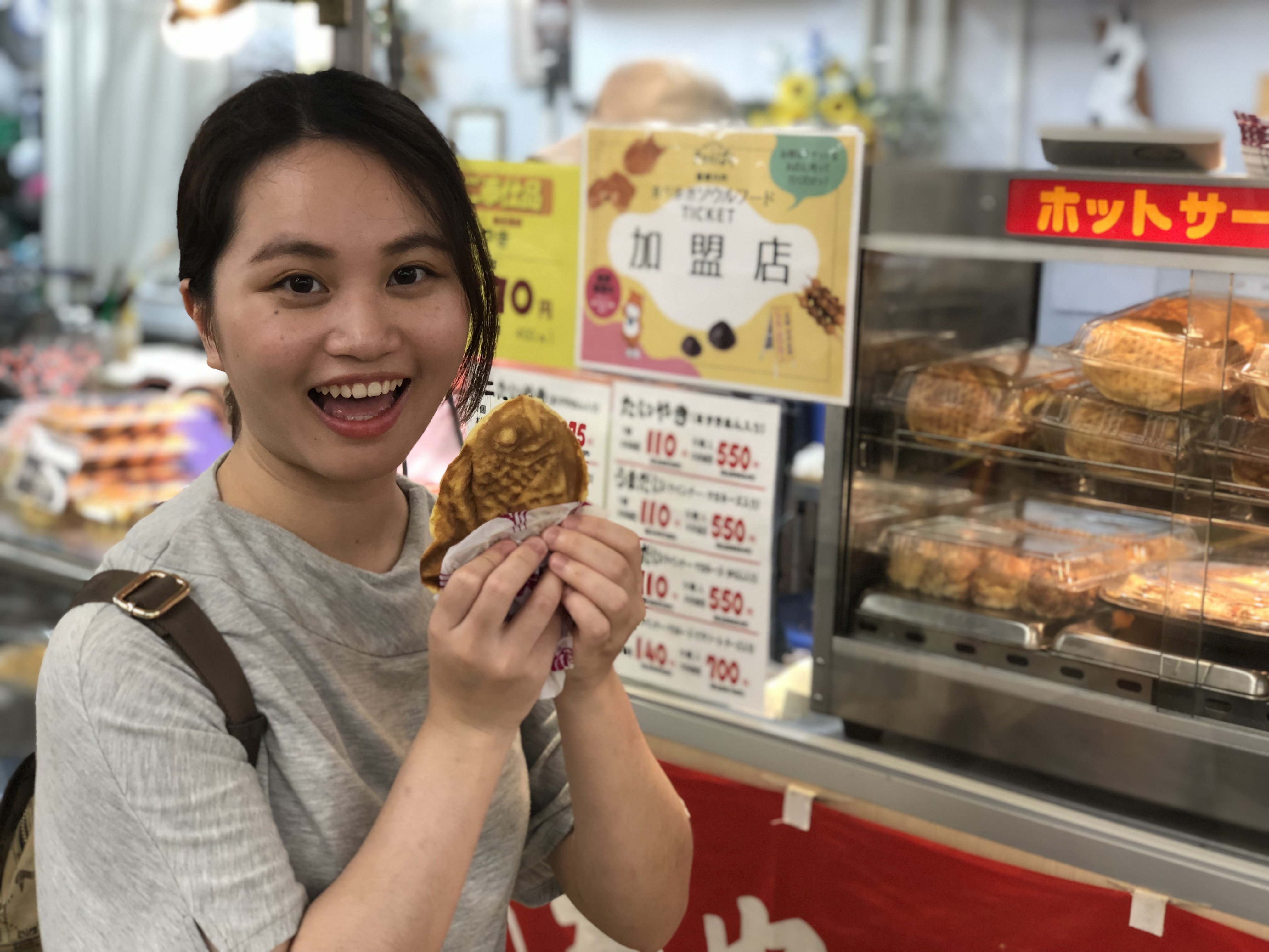 焼きたての「うま鯛」ゲット~♪普通の鯛焼きとはちょっと違いますよ~「う」いんなー&「ま」よねーず入りで「うま鯛」。スナック感覚の鯛焼き、ぜひご賞味あれ。