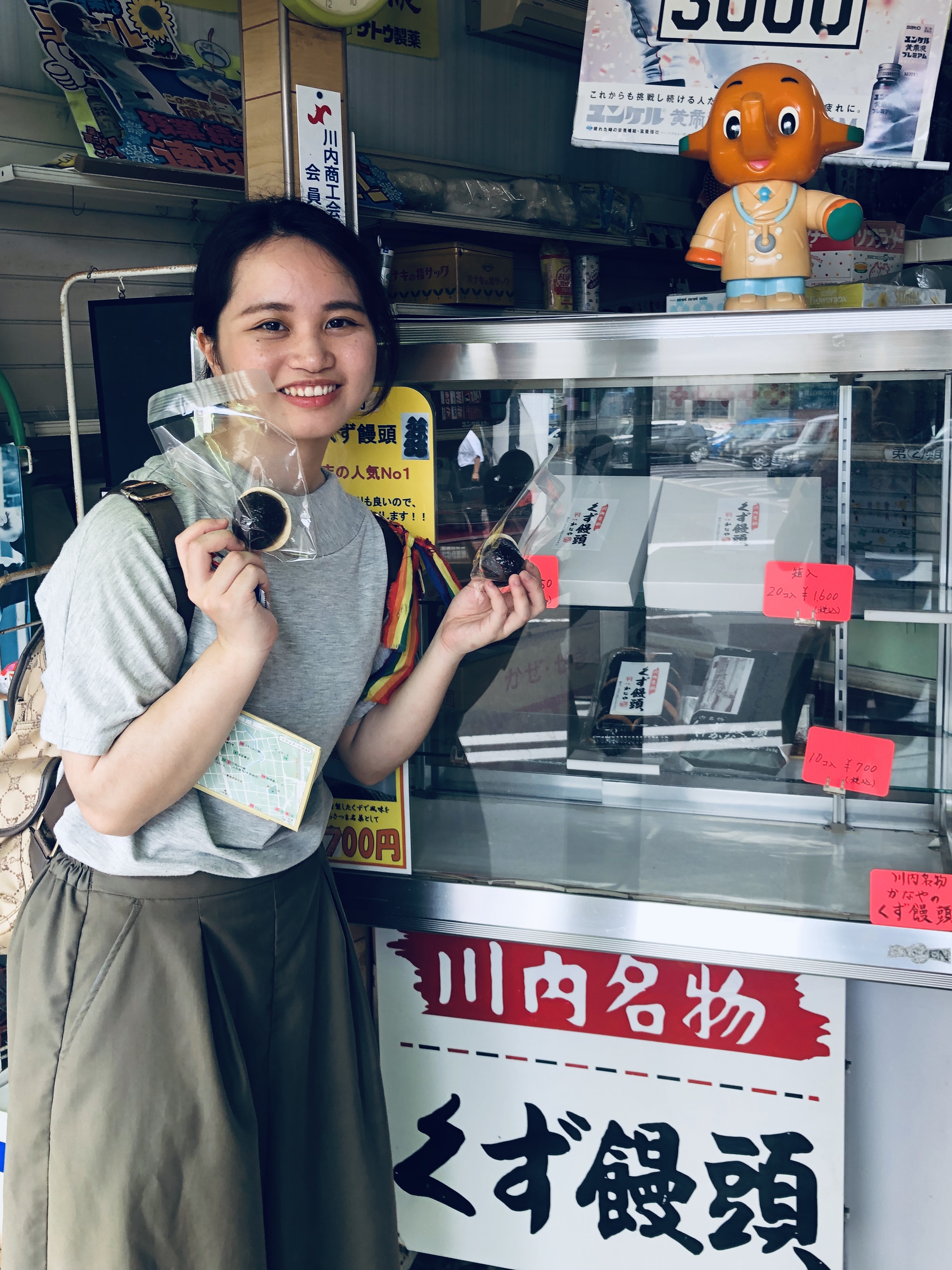金谷薬店さんが戦後から作り続けている「くず饅頭」。終戦直後、薬の仕入れがままならなかった時に、ご主人のお母さまが作り始めたのだそうです。