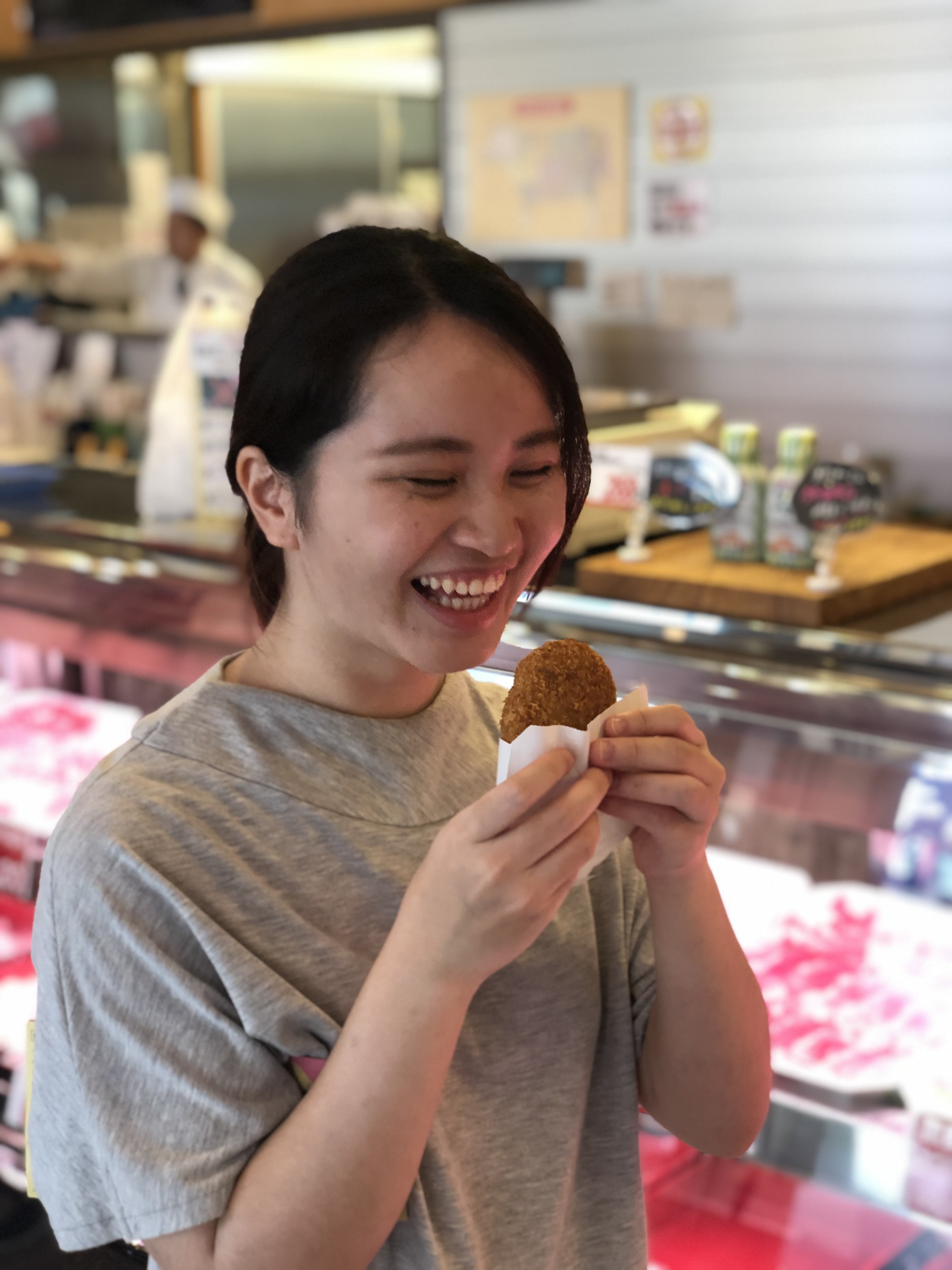 出てきたのは、揚げたてアツアツの牛肉コロッケ!