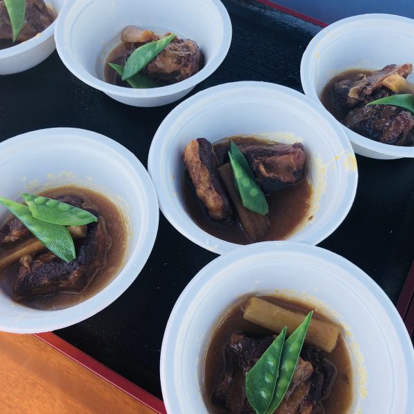 田苑酒造さんの焼酎。陽射しはあるものの、少し風も吹くなか、温かい豚汁やお湯割りが染みます。絶妙なポイント設定とメニューです!