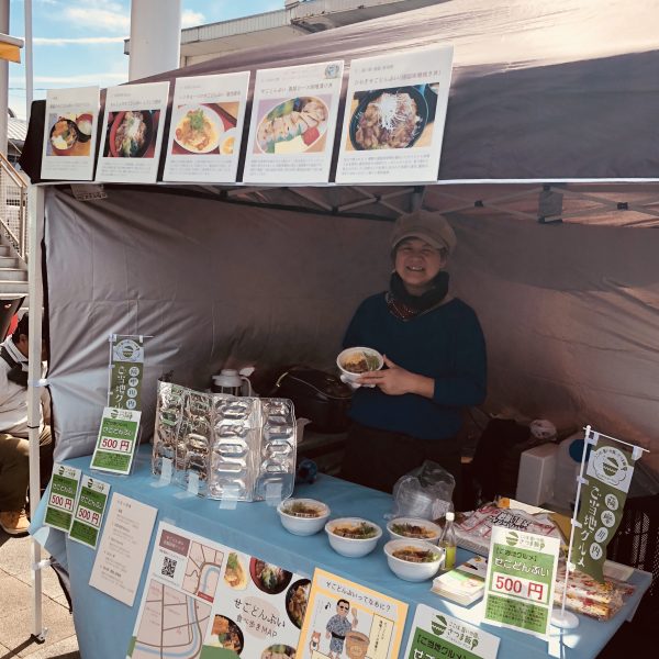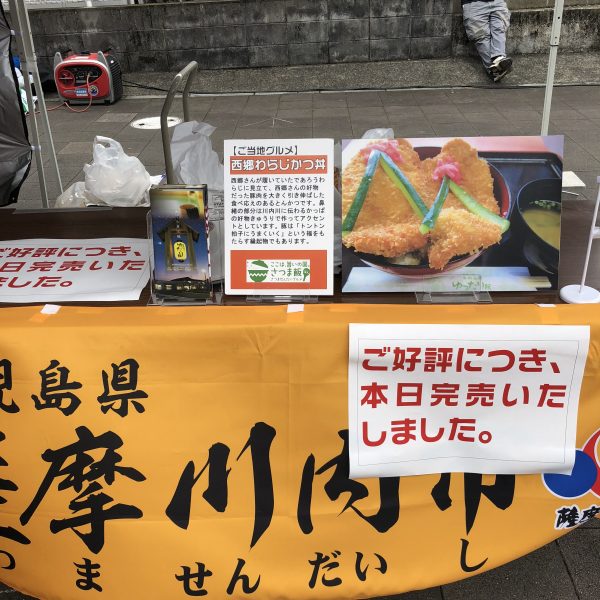 薩摩川内市の有名飲食店によるブースが立ち並ぶなか、薩摩國シティセールス大学・グルメ開発学科の受講生がトライアル出店を実施。ご当地グルメとして売り出し中の「西郷(せご)どんぶい」と「西郷わらじカツどん」を販売しました。