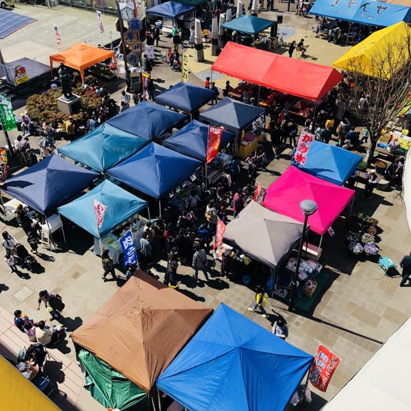 2018年3月。恒例、旅の市・うんまか市・ごほうびマーケットがJR川内駅前・西口広場にて開催され、春の陽気に誘われた多くの人出でにぎわいました。