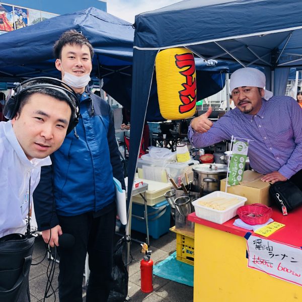 この日は会場からFMさつませんだいの生中継「きょうもぶらっと 駅前広場」を実施!