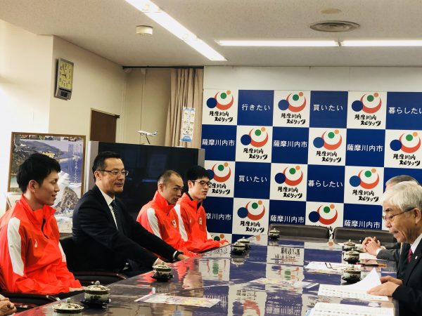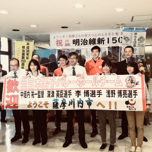 全日本男子バレーボールチーム、新生”龍神NIPPON”!薩摩川内市で合宿中の中垣内祐一監督と選手による表敬訪問がありました。