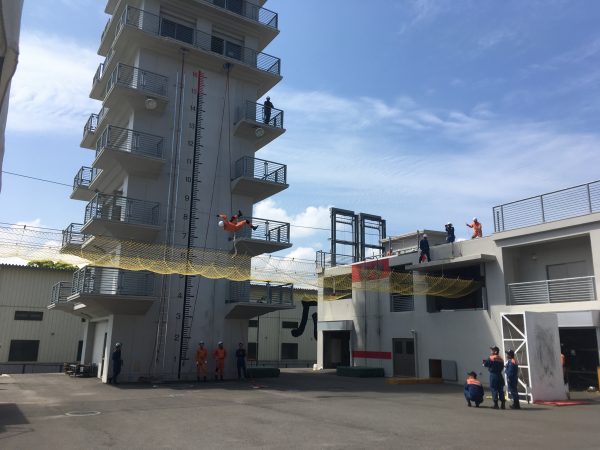 【ロープブリッジ救出】4名1組で、設定された渡過ロープにより対面する搭乗に侵入し、
