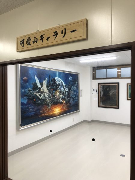 続いて訪れたのは、県立川内高等学校の敷地内にある可愛山同窓会館。同校の卒業式の模様をお伝えした際にも訪れた「可愛山ギャラリー」。川内高校創立120周年を記念して開設されました。こちらには生賴範義の大作「我々の所産」が展示されています。