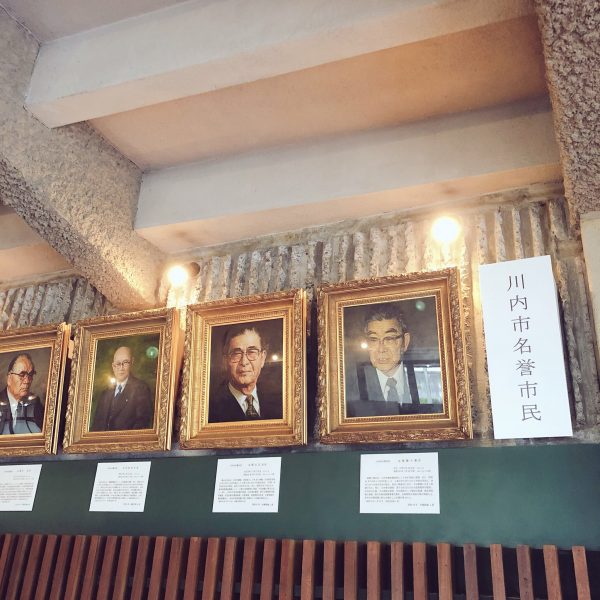 もうひとつ、川内文化ホールで見逃せないのがこちら。大ホール入口にある旧川内市の名誉市民の肖像画です。この肖像画(ひとり除く)を描いたのは、日本を代表する画家・イラストレーターの生賴範義(おおらい・のりよし)。