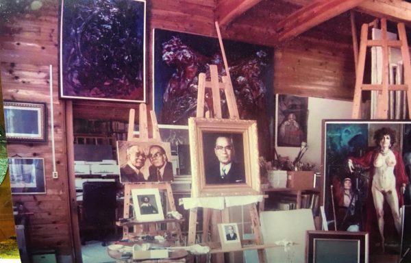上の写真は、生賴氏のご子息である画家のオーライタロー氏が「父の仕事場」として紹介されたものです。現在、展示されている肖像画を確認できます。
