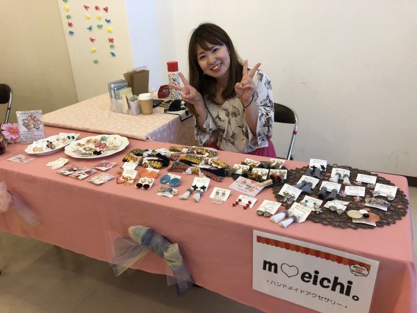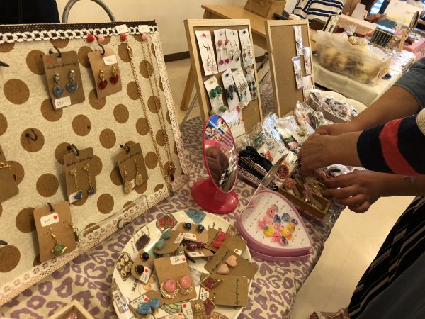 そんなお話が広がり、ハンドメイドアクセサリーや布小物、ヘアアクセサリー、キーホルダー、おいしい珈琲に焼き菓子、天然工房のパンなど、全8店舗が並びました。