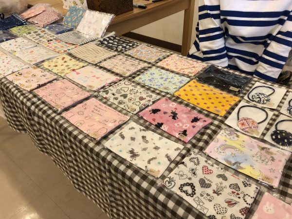 机には可愛らしい柄のマスクやヘアゴムがずらりと並んでいました。こんなかわいいマスクだったらずっと付けていたくなりますよね!