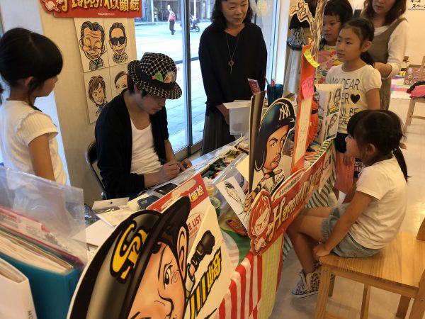 次々にお客さんが並んでいたのは、福岡から来ていた「アトリエ龍」さんによる似顔絵ブース。この日はなんと500円で似顔絵を描いてくださるということで、たくさんの子どもたちが描いてもらっていましたよ。母の日の素敵なプレゼントになったようです♪