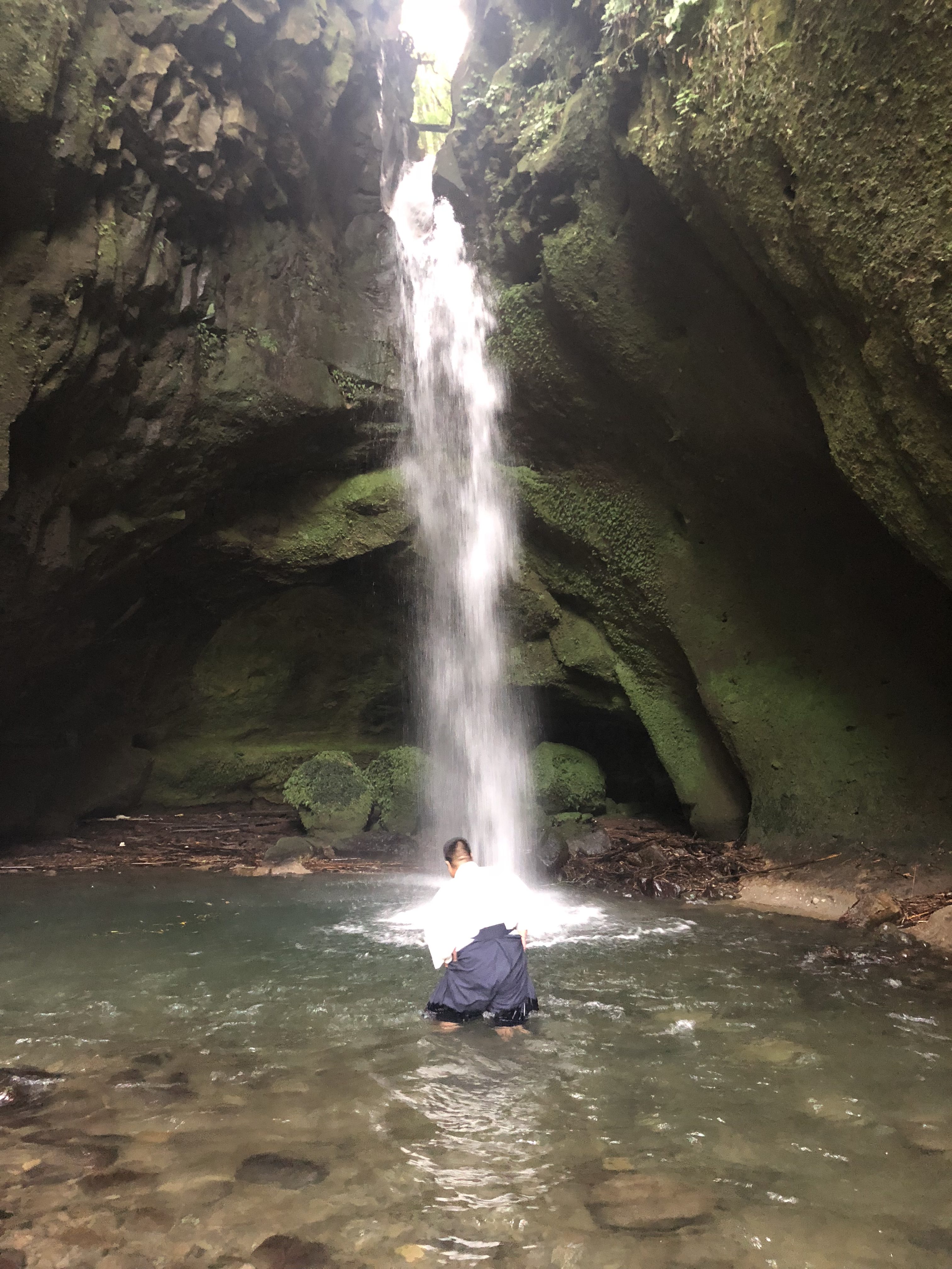 たけどんが身体張ってくれたどーーーん!!#鈴木亮平 さんが西郷どんでロケした滝だよ。