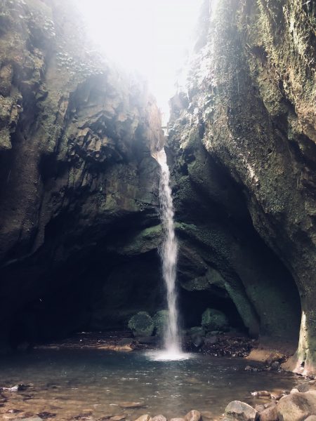 鬱蒼と茂る木立のなかを歩いていくと…滝の音が聞こえてきます。