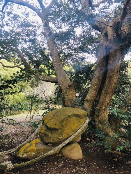 神社内には、「磐境(イワサカ)」と呼ばれる亀形の大きな岩があり、ヤマサチヒコ(ヒコホホデミノミコト)の御陵跡とも伝えられています。パワースポットとして人気なんだとか。
