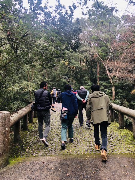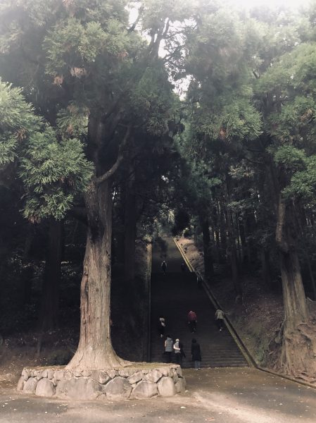 山の中腹まで続く階段を登ると