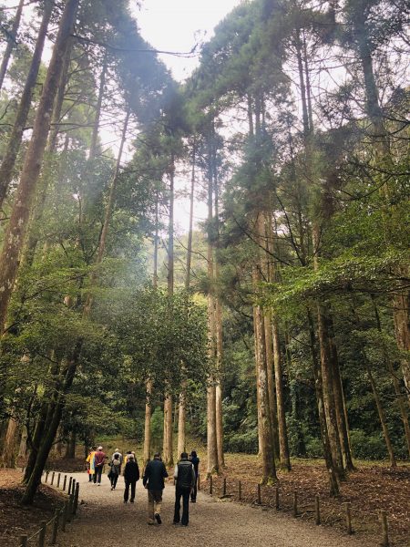 高い木立ちが荘厳な雰囲気を醸し出す