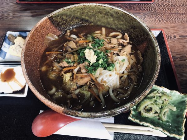 吾平物産館「つわぶき」にて昼食です。名物・落花生を使ったピーナッツ豆腐や特製味噌煮込みうどんでひと息。