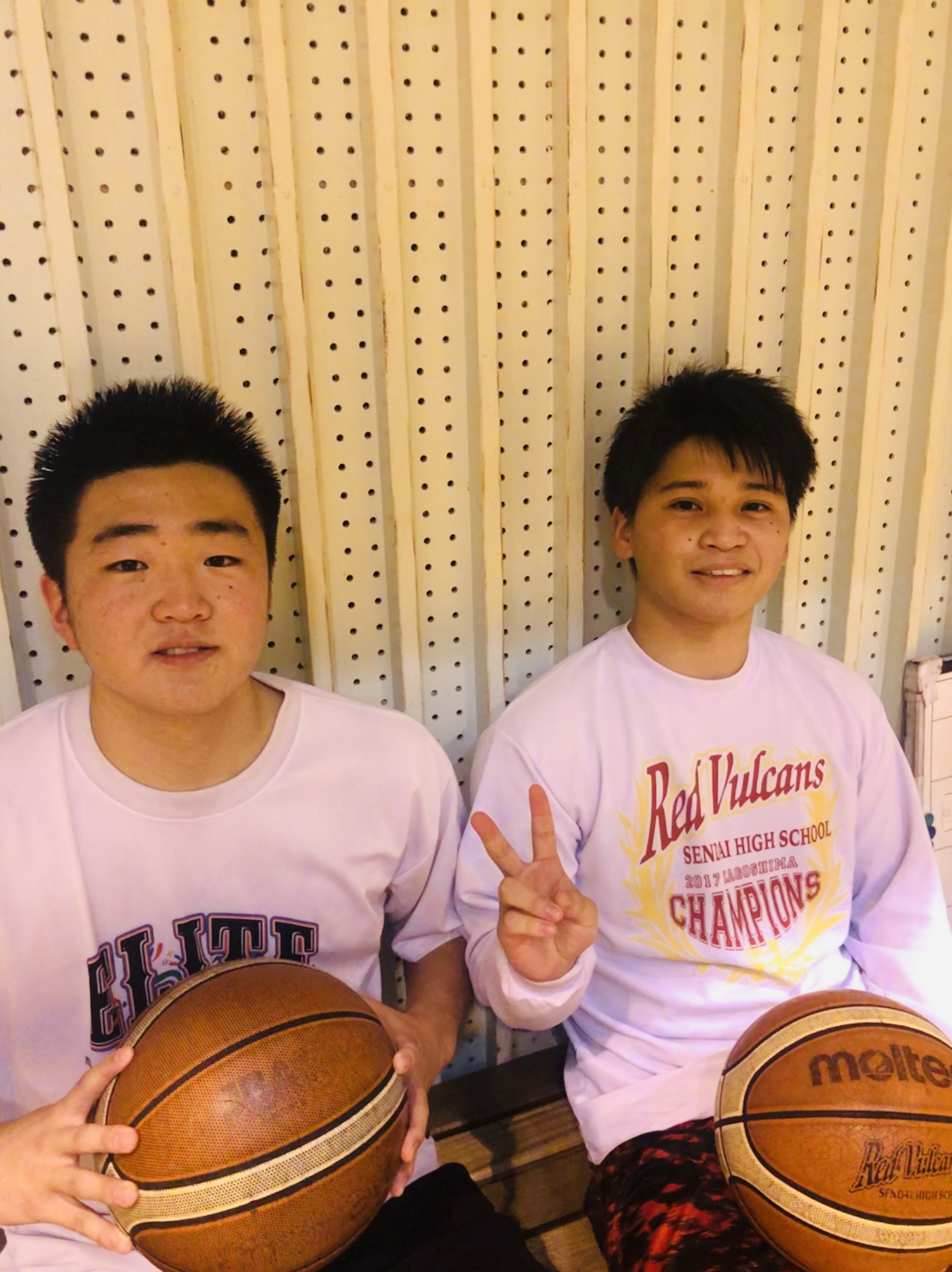 チームに残った3年生は4人。中山選手(左)堀選手。勝負どころでのスリーポイント、期待しています!