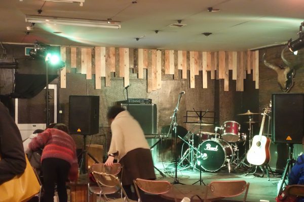 中に入るとステージがセッティングされ、本日のメイン・プレイヤーのわかまつごうさんがお客さんと談笑していた。