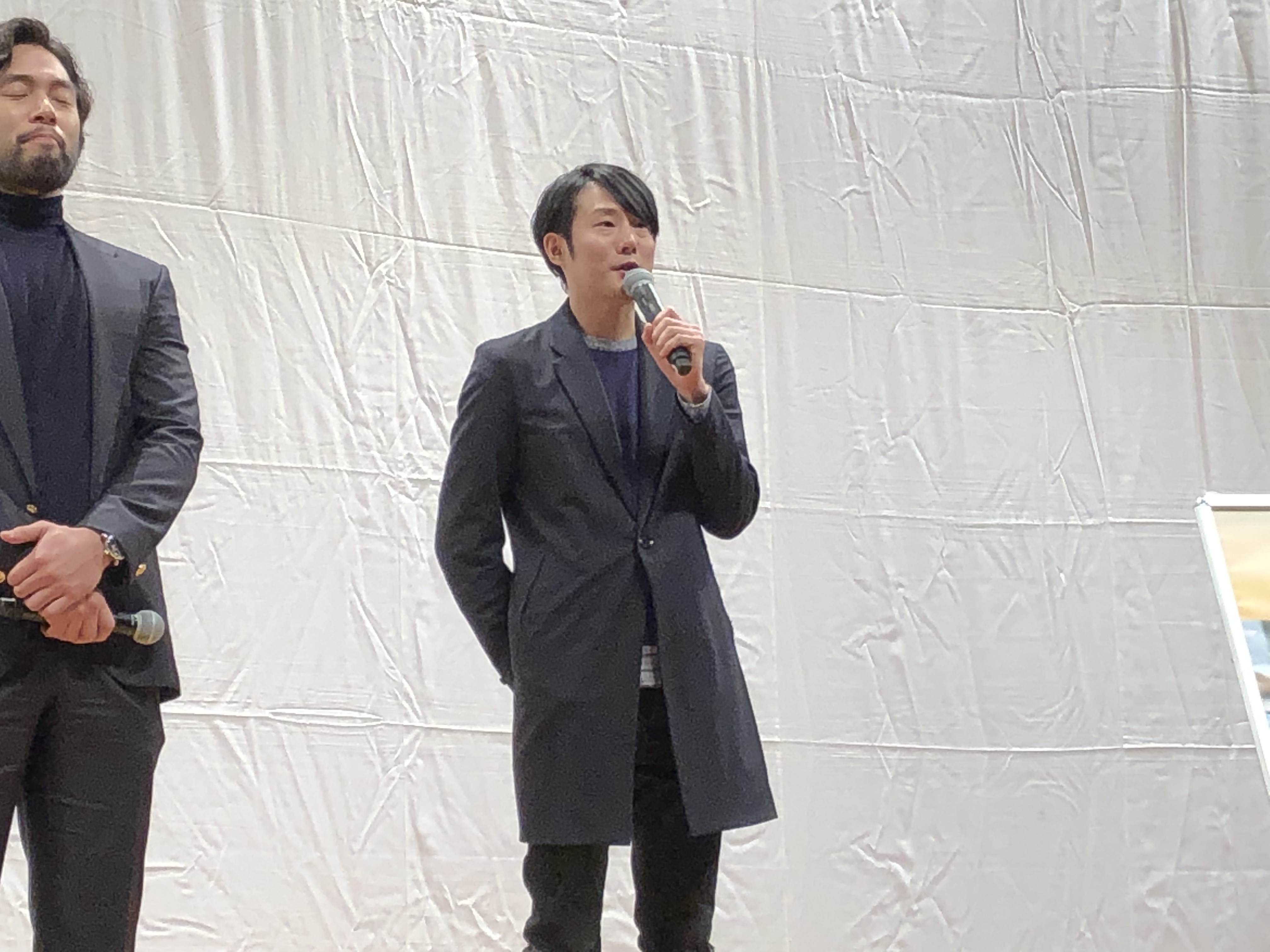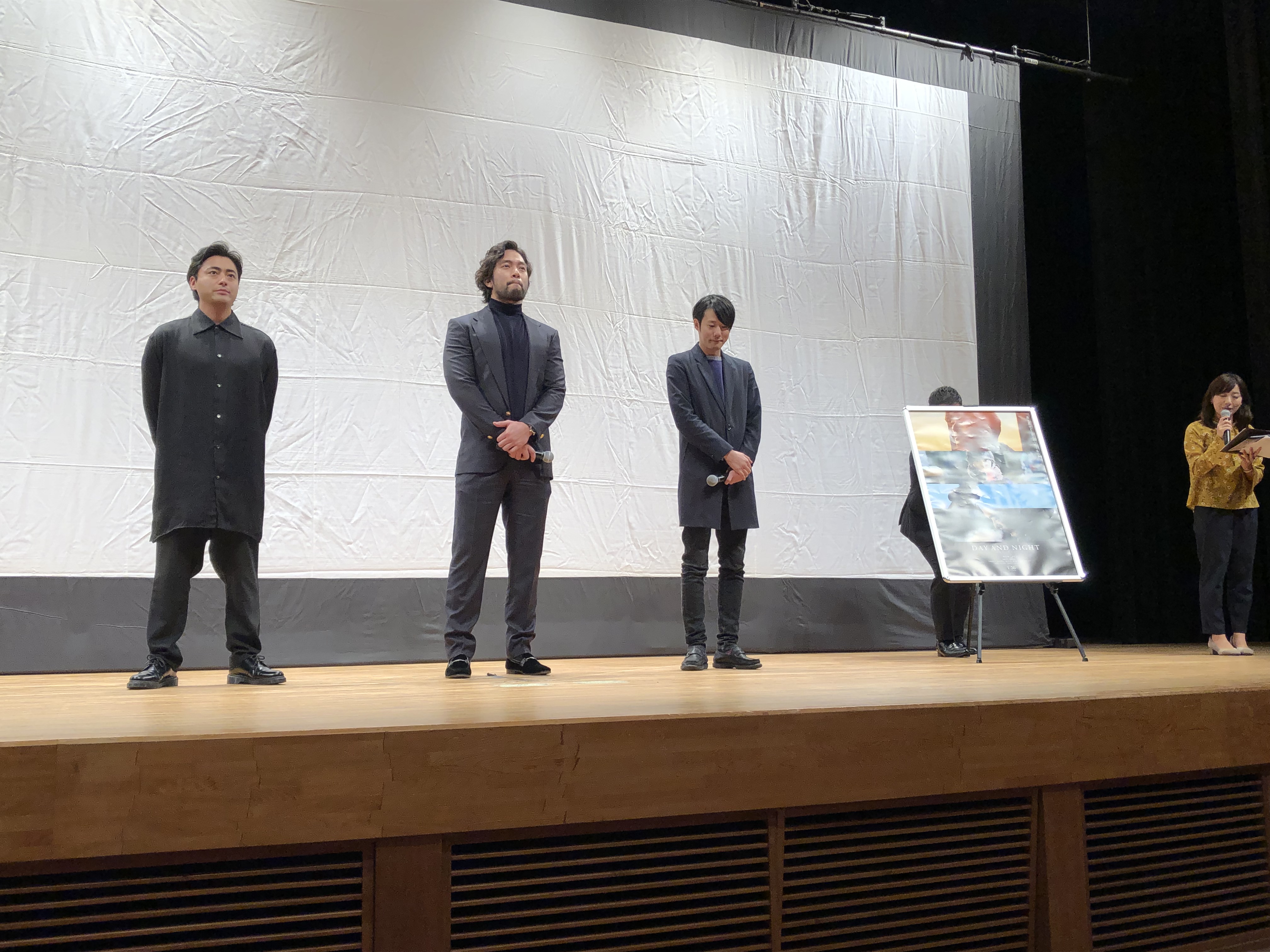 1月12日(土)、薩摩川内市国際交流センターにて先行上映会&舞台挨拶が行われ、ここ、薩摩川内市ご出身の山田孝之さん(プロデューサー)、阿部進之介さん(企画・主演)、藤井道人監督(監督・脚本)が登壇しました。