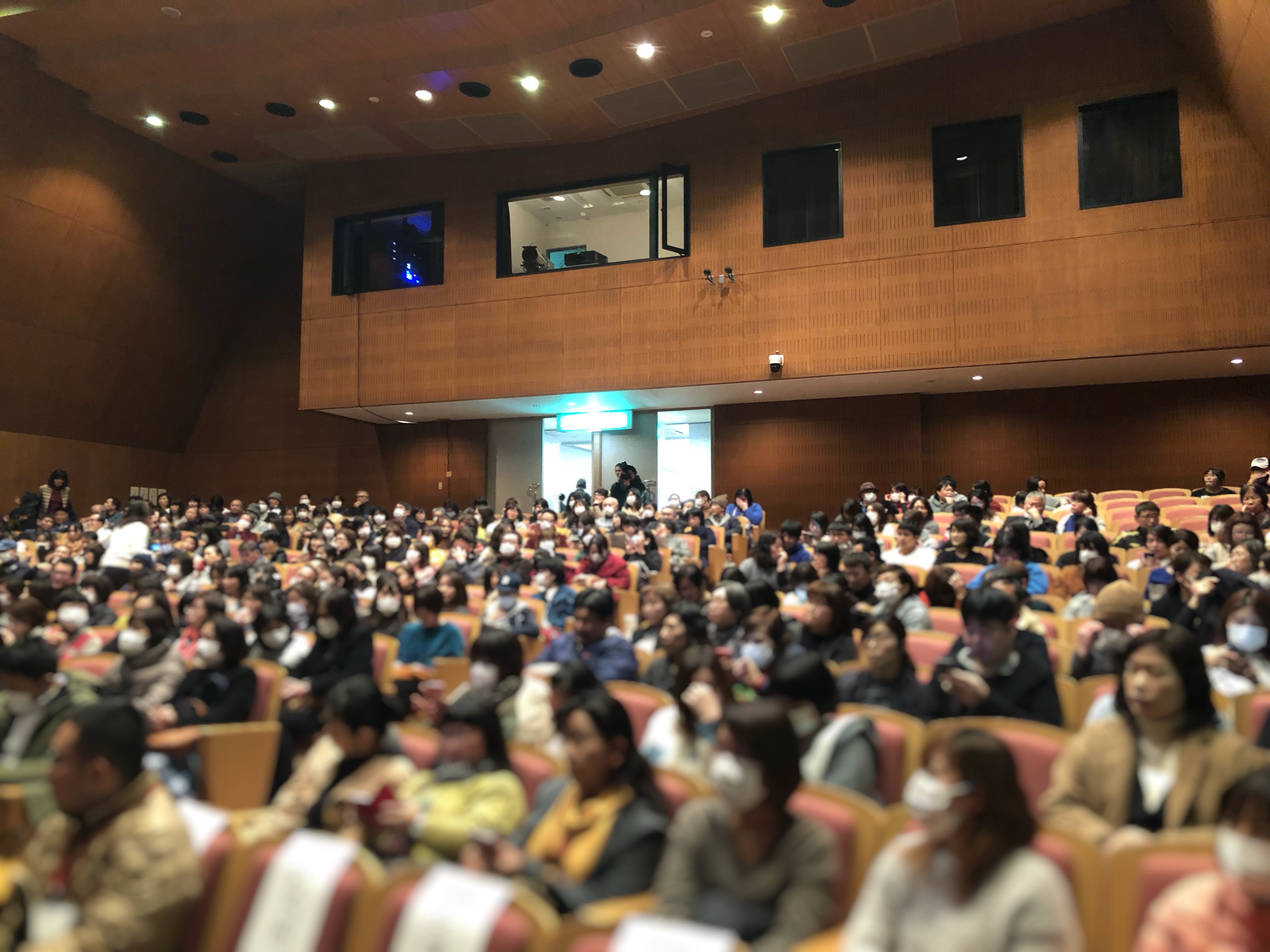 御三方の登場に、大きな歓声と拍手に包まれる会場。なんと、この日は満員御礼!遠くは、佐賀、福岡から来られたファンの姿も。