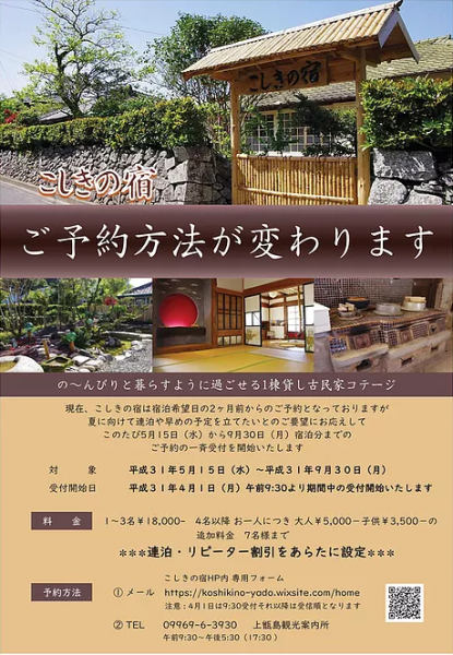 現在こしきの宿は、2ヶ月前から予約可能ですが、夏に向けて~9月30日宿泊分までのご予約を一斉受付しているそうです。お早めのご予約をオススメします☆