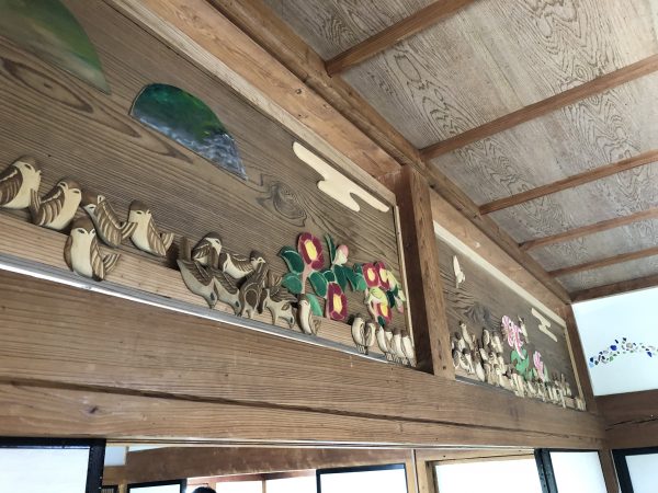 お部屋には全108羽の雀(スズメ)の木彫りのデザインがあります。が、6羽ほど飛んでいって今は102羽だとか。(この謎を解明したいと思うのはきっとあなたも一緒でしょう?)