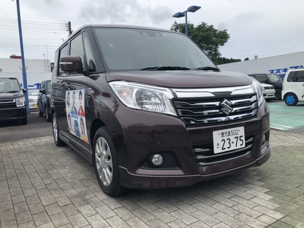 スズキ自販鹿児島川内営業所で、SOLIOについていろいろ教えていただきました。