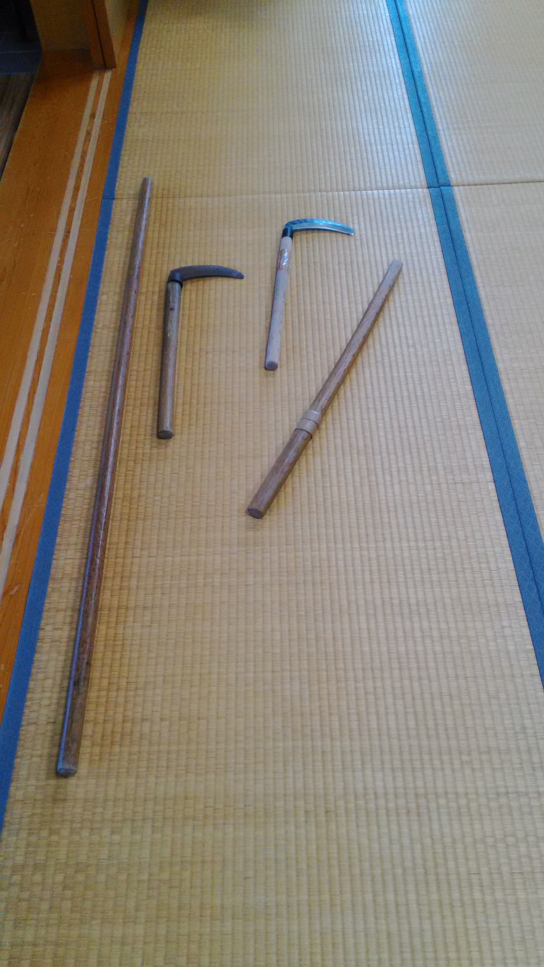 過去に、踊り用の鎌が少なくなってしまった時期があったそうで・・・ホームセンターで加工してもらって作ったこともあったとか。