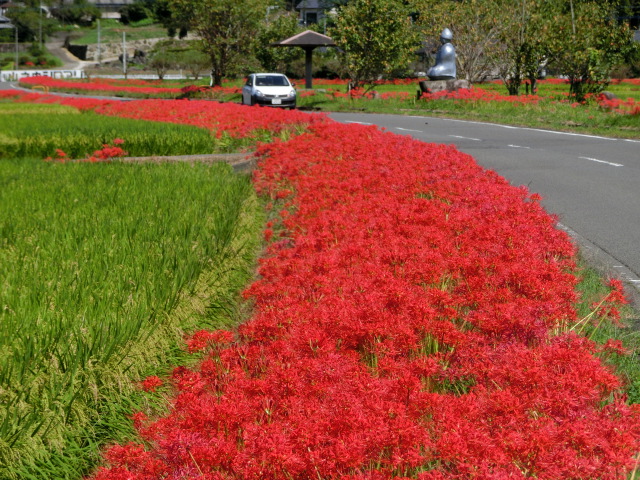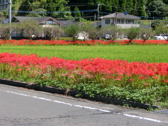 その田の神ロードの道沿いに、宍野のみなさんが彼岸花を植えて、手塩にかけて毎年、花を咲かせています。