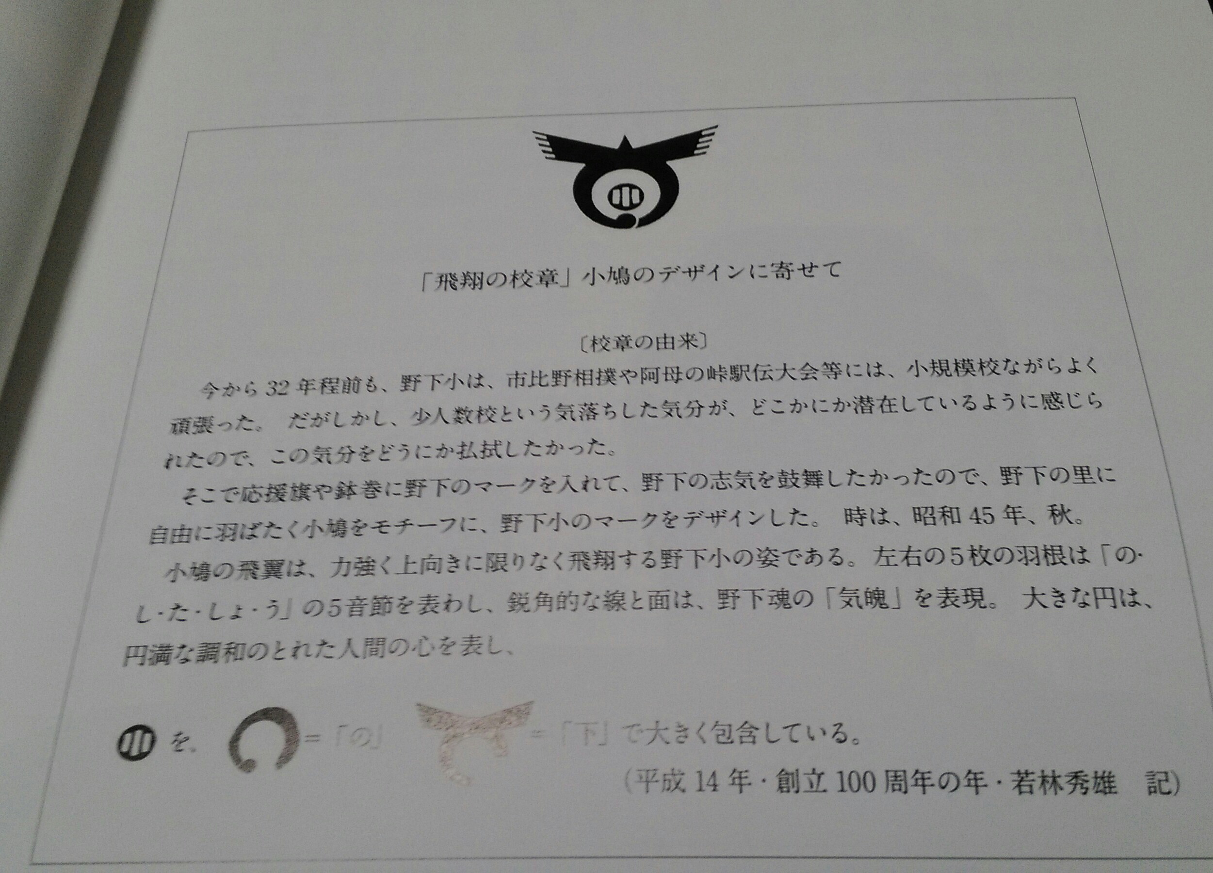 現在、野下地区では小学校の校章だったマークを野下地区のマークとして伝承しています。