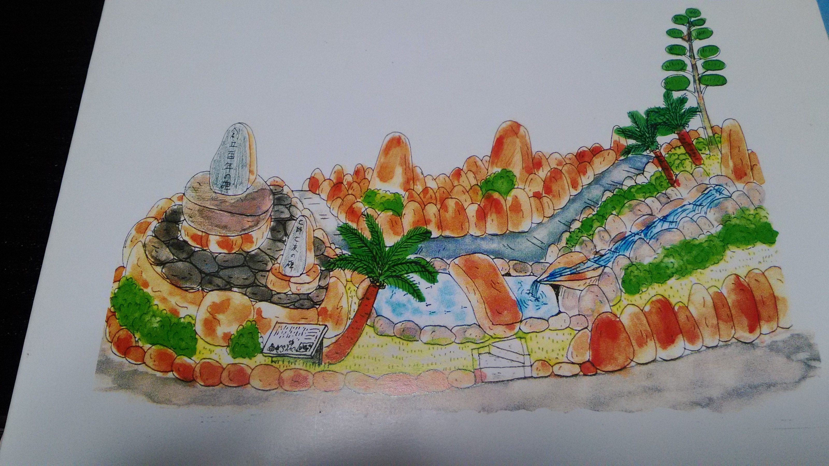 記念碑、亡師亡友の碑、地域の風景の表現から成るふるさと公園は「心」の文字を表しています。