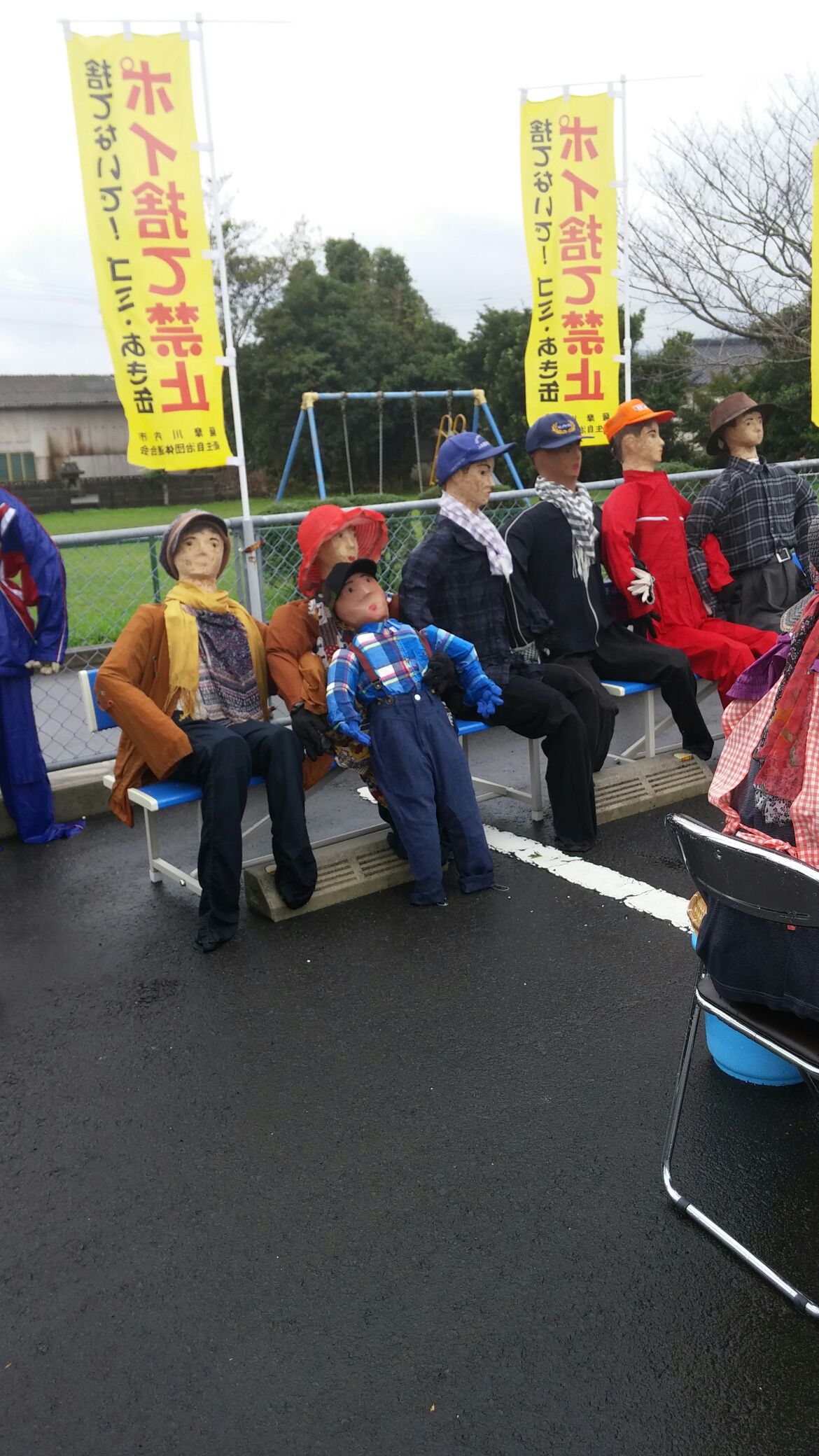 2回目の今年はこんな案山子たちが亀山地区コミュニティセンターの駐車場に展示されています。