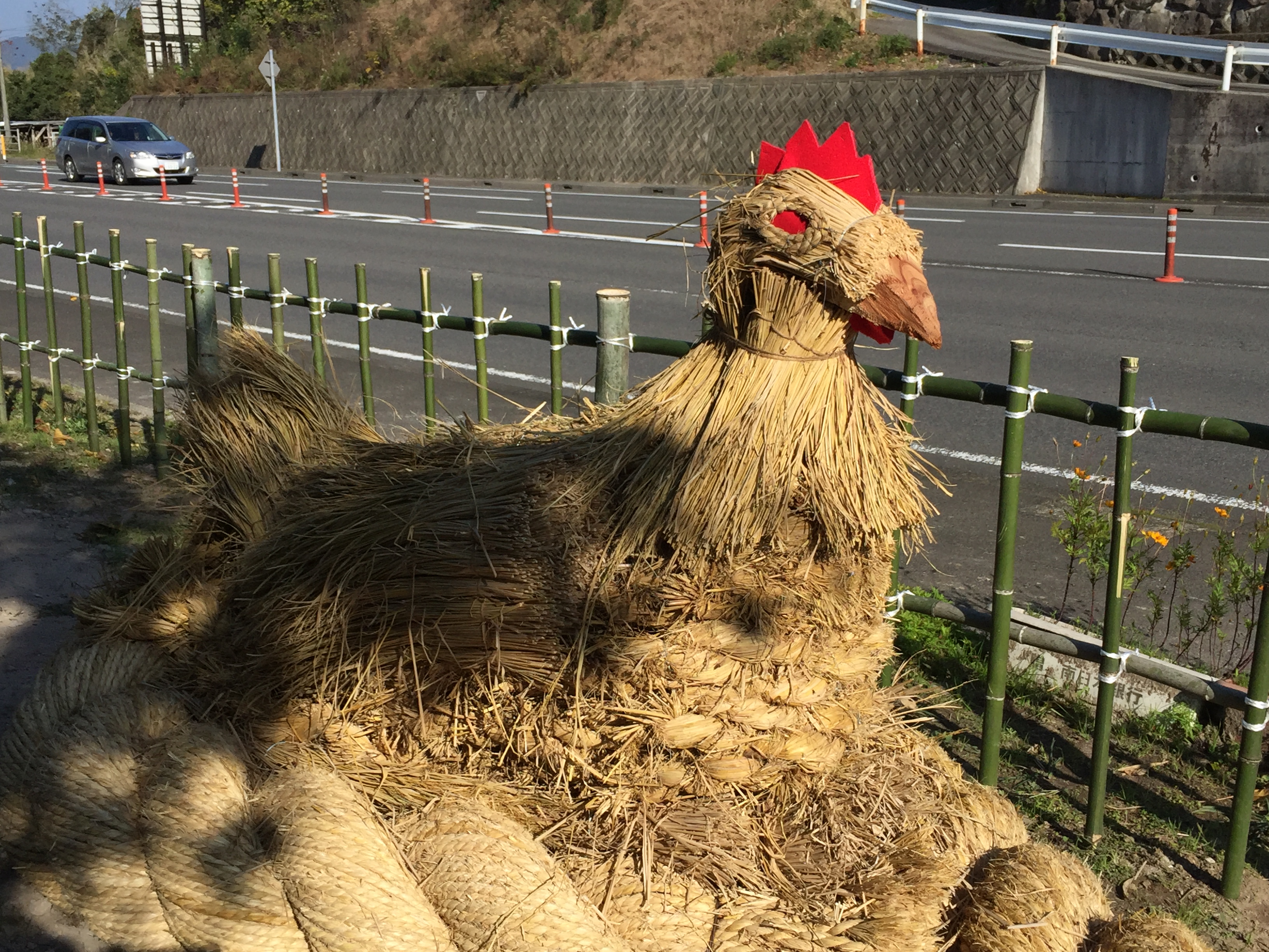 昨年の申年の際は「みざる・いわざる・きかざる」の可愛い3匹のお猿さんでしたが、来年・2017年は酉年ということで雄鶏と雌鶏が2匹登場。とても大きいですよ~!