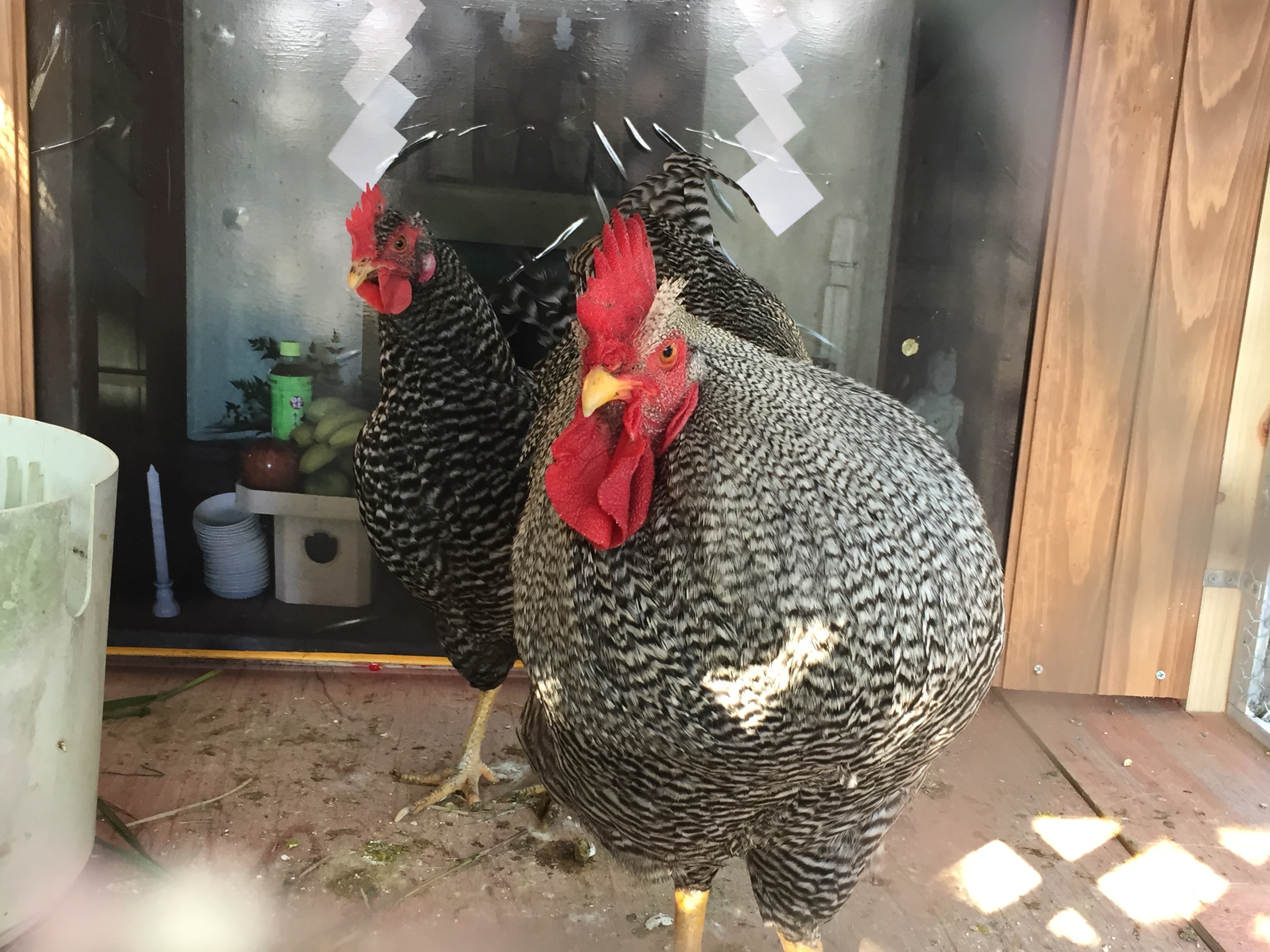 なんと、本物の雄鶏と雌鶏が2羽中にいらっしゃるんです!