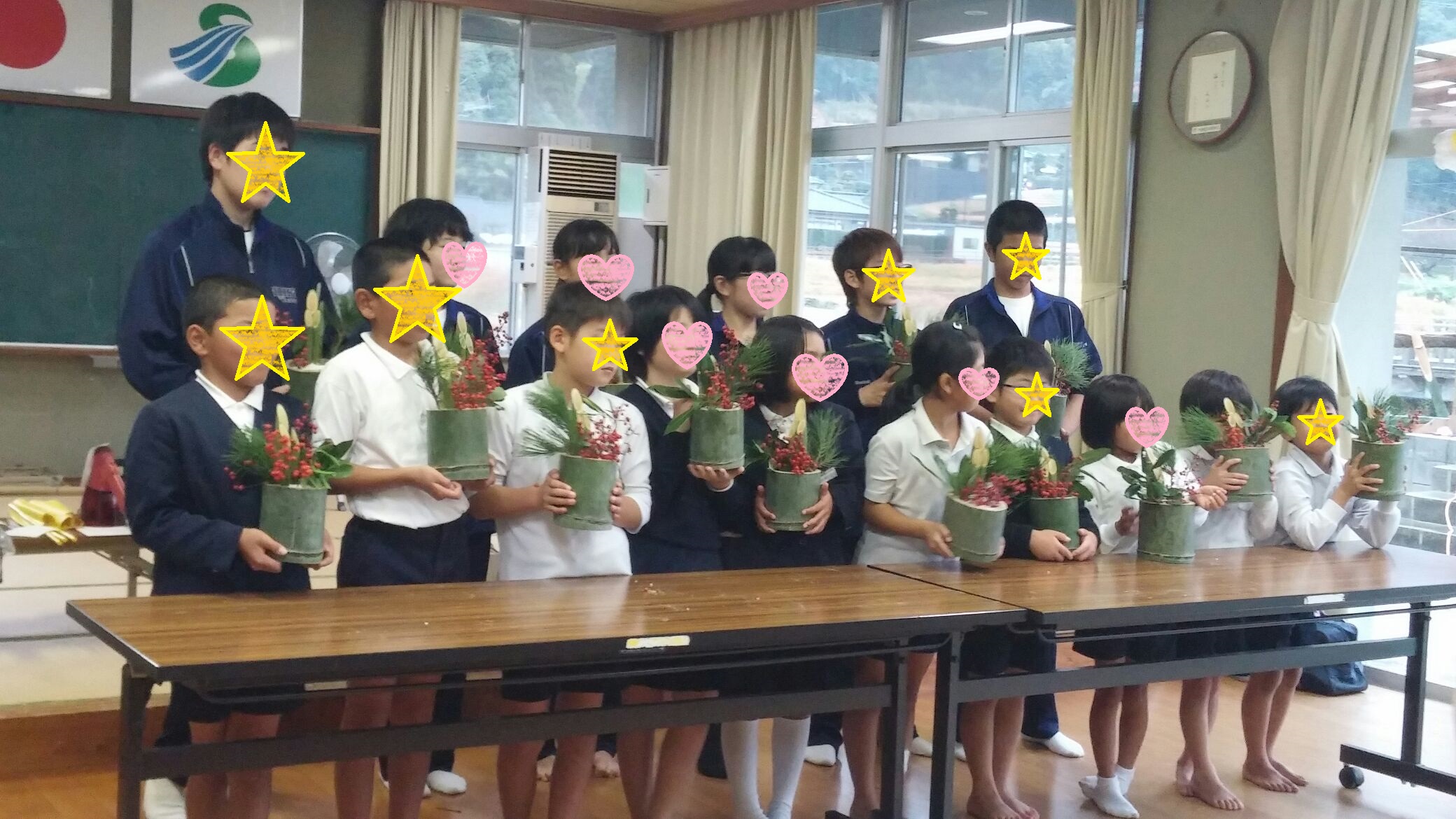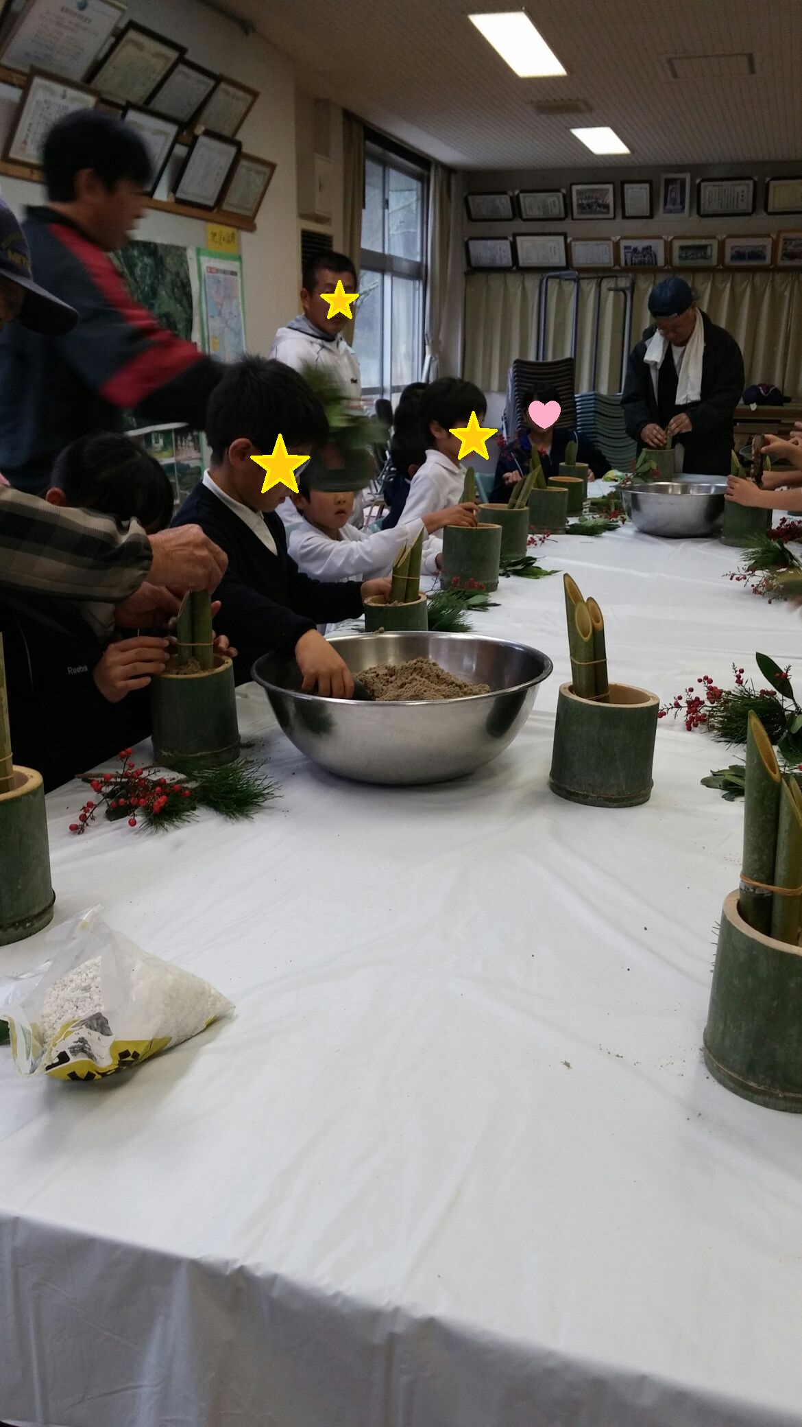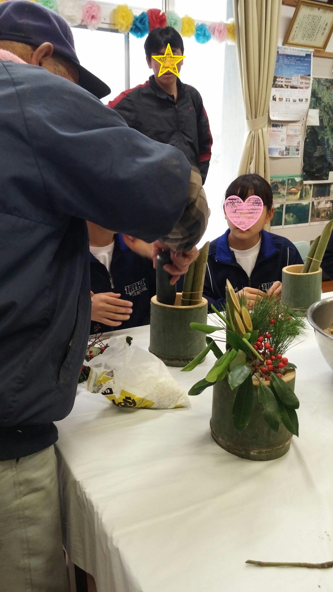その後は、子供たちが地域のおじさんたちに門松作りを教えてもらいました。