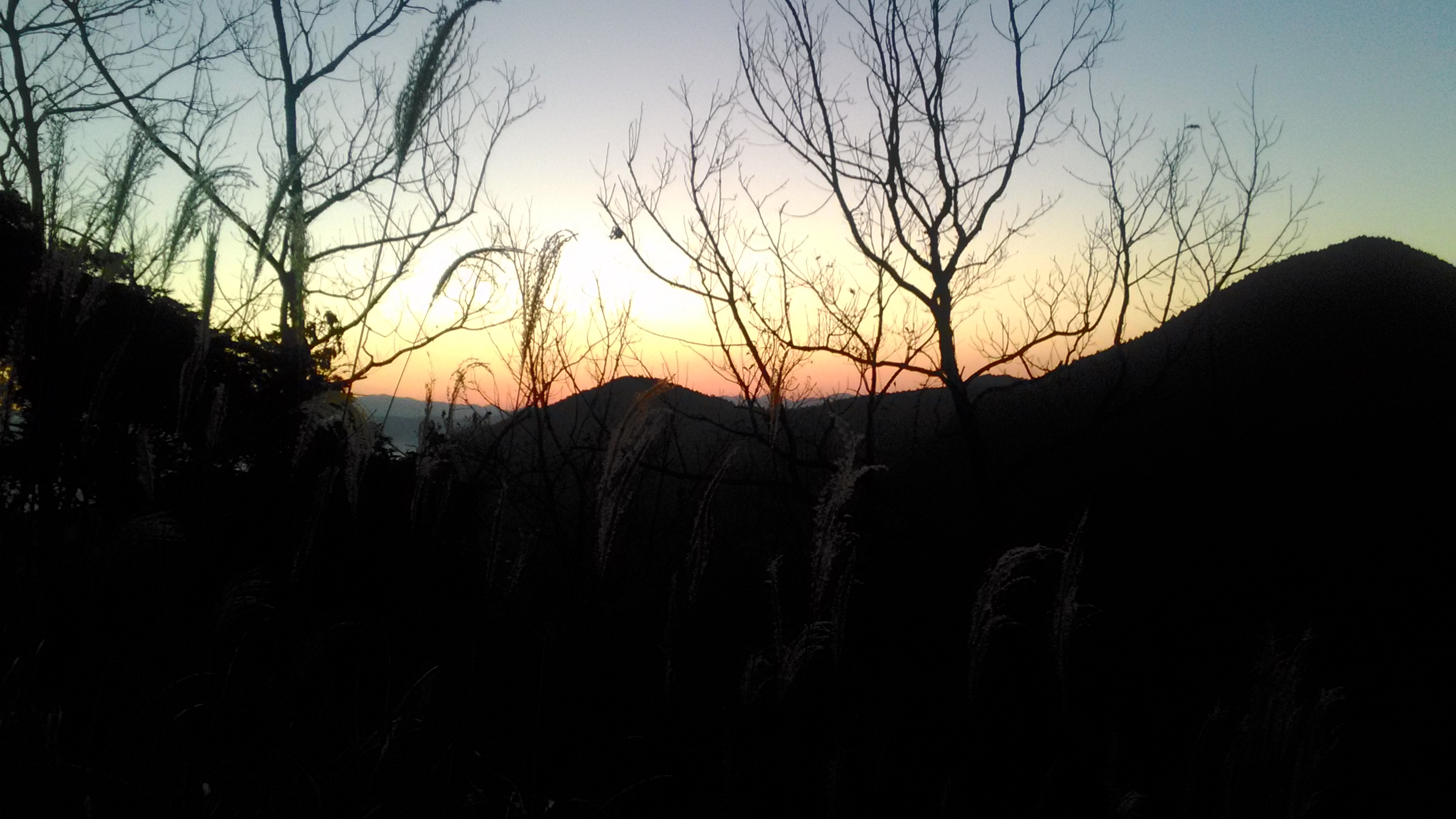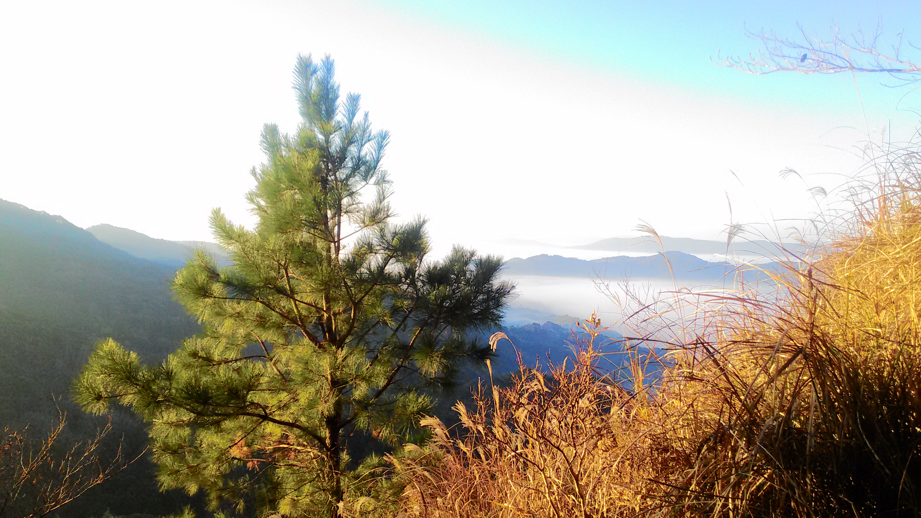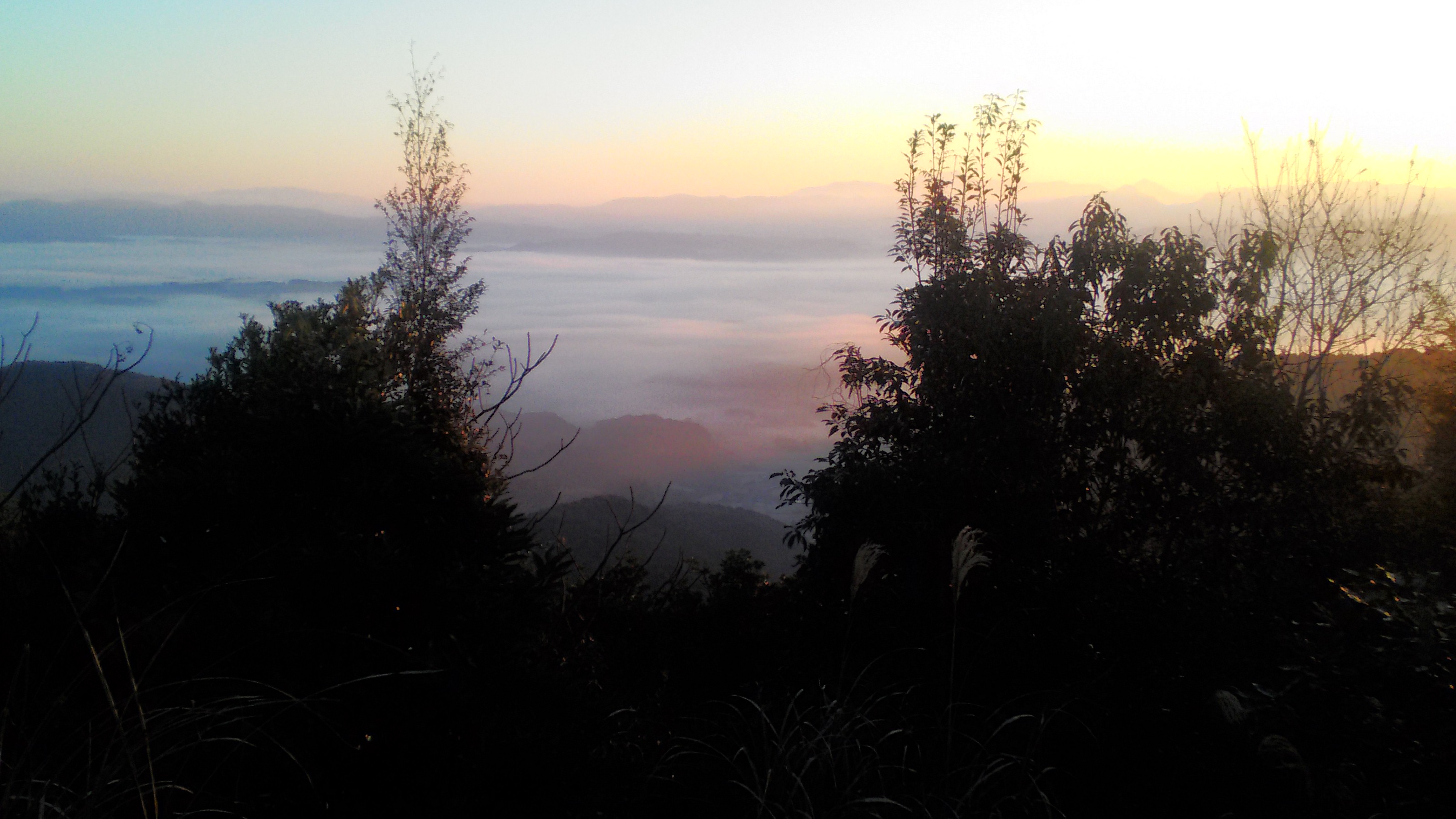 道中、ふと振り返ると山の下に広がる雲海や朝焼けが見えました。