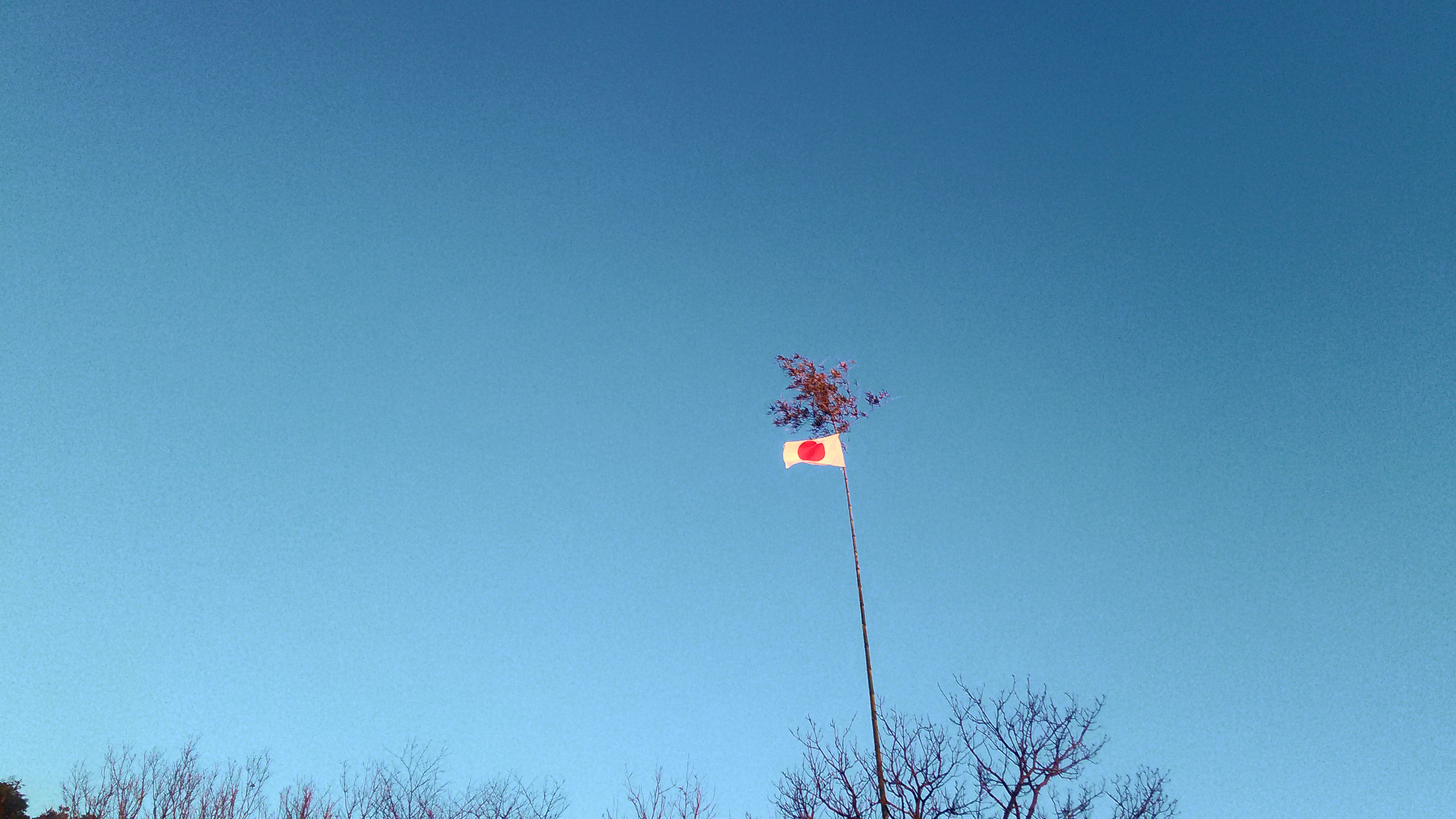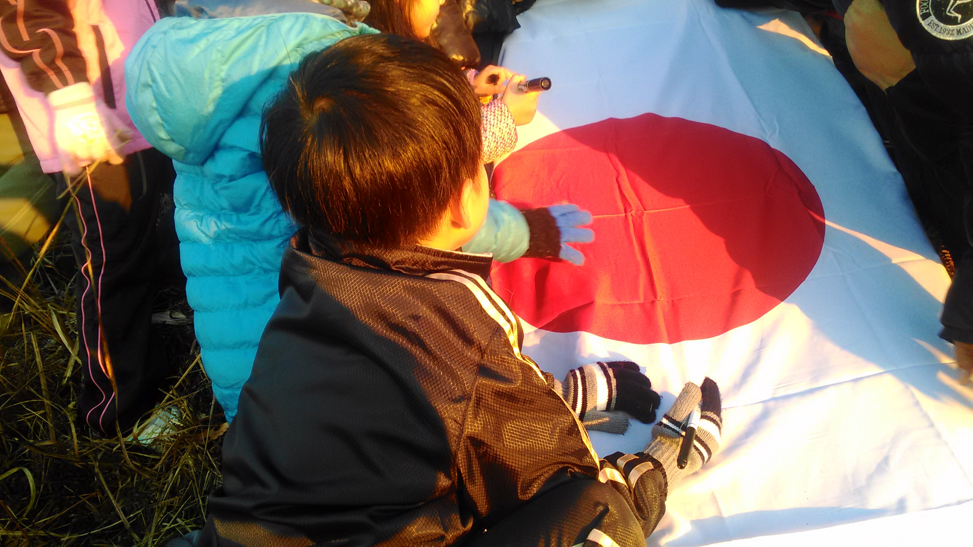 初日の出を拝んだ後は、国旗を山頂に立てます。