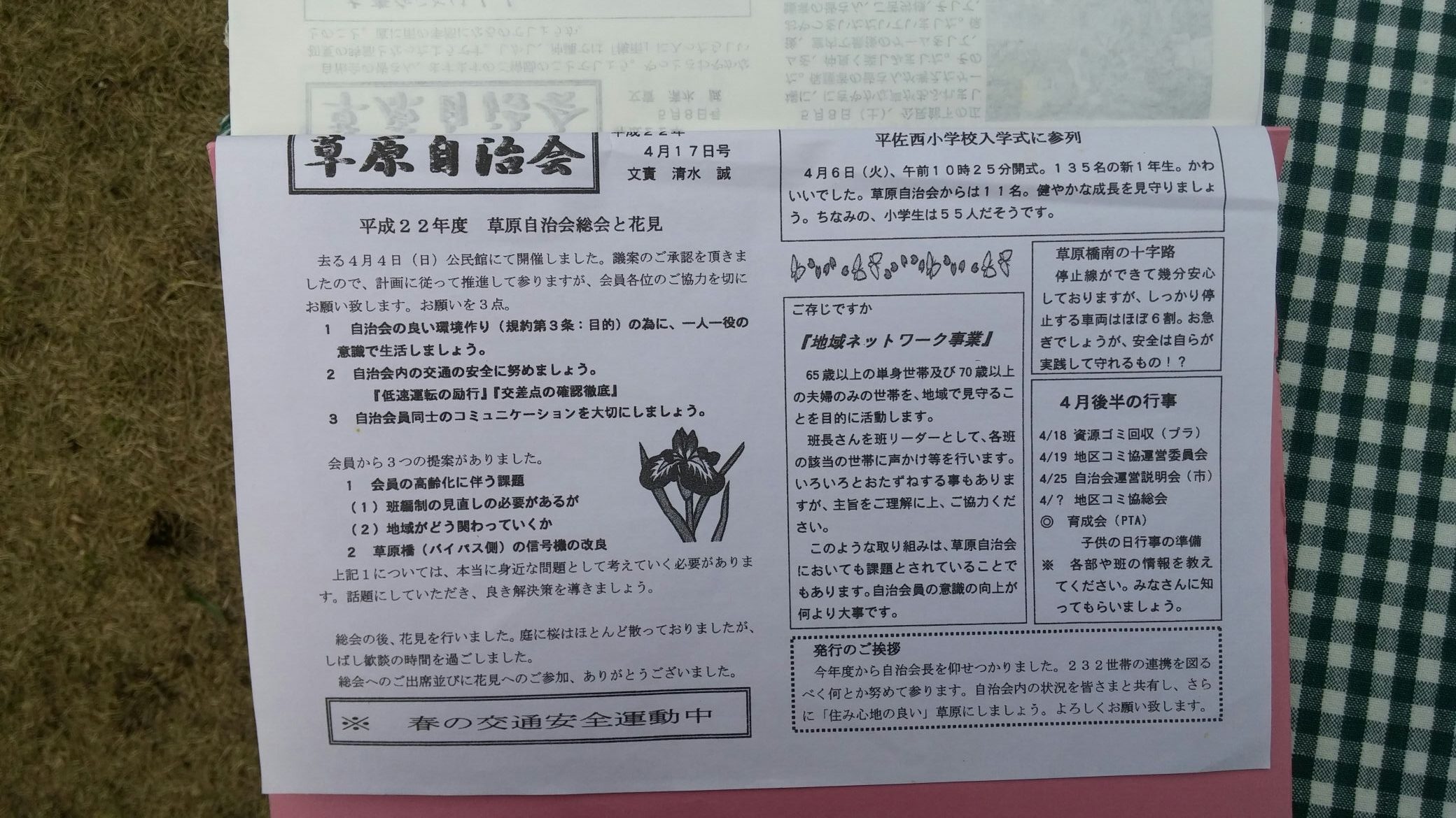 草原自治会全戸に配布されている草原だよりは、草原自治会長の清水誠さんが