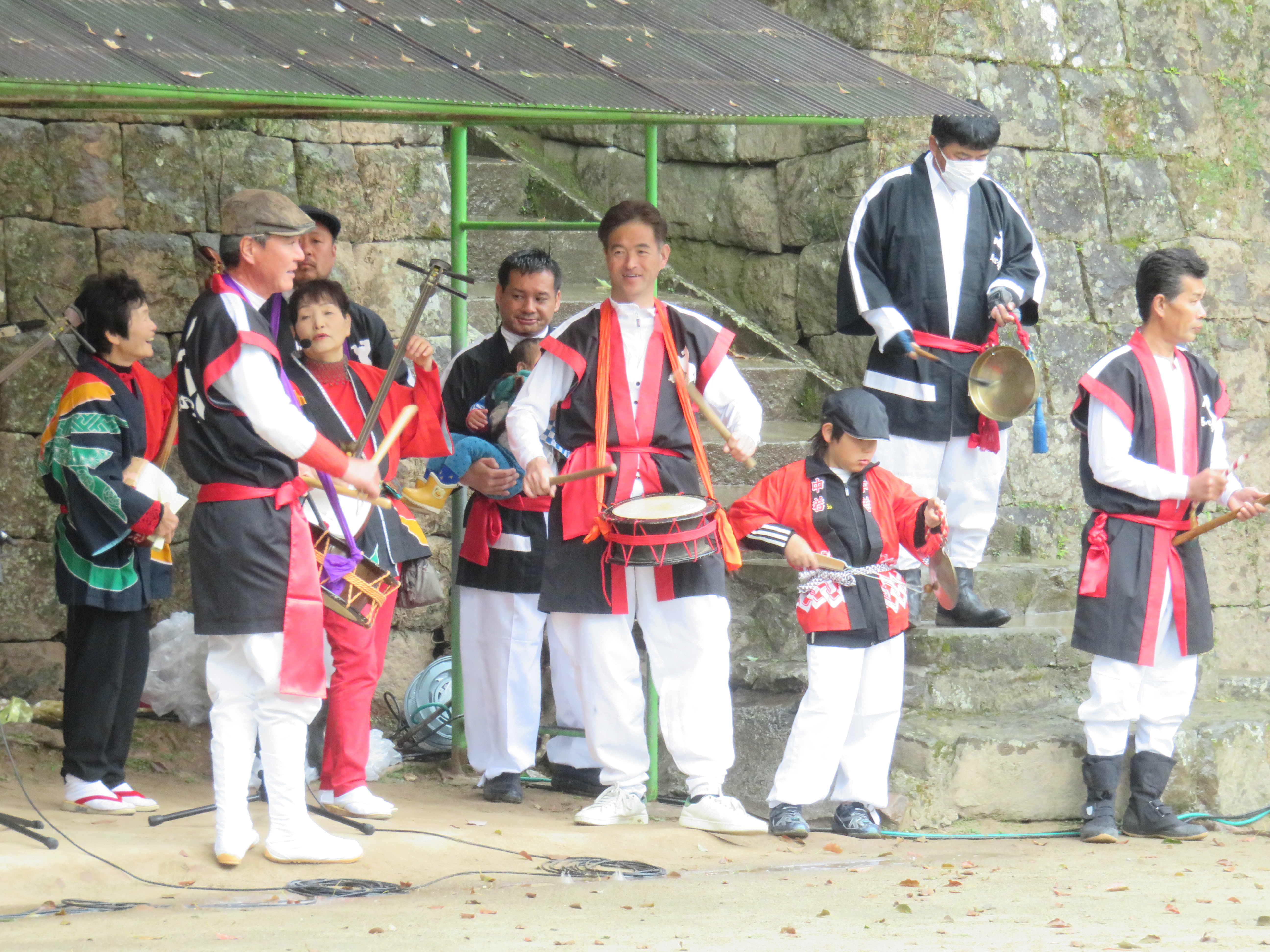 当日の午前中は本社祭神事・保食神社祭が行われ、保食神社前で、午後からは本社前で鈴懸馬踊と舞踊が奉納されました。