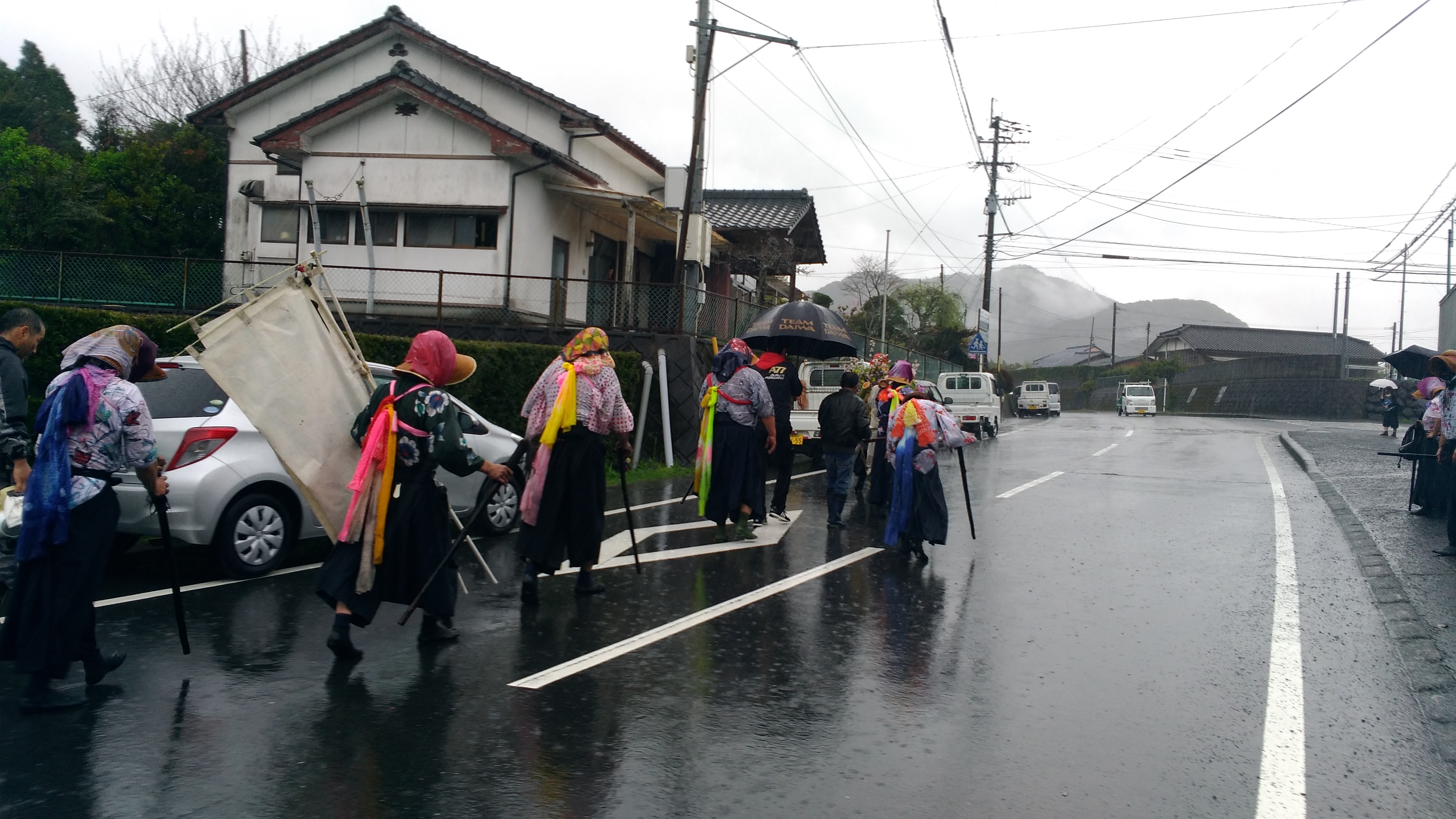 この日にあわせて総会が行われ、終わった頃に、田の神さぁ御一行の到着です。