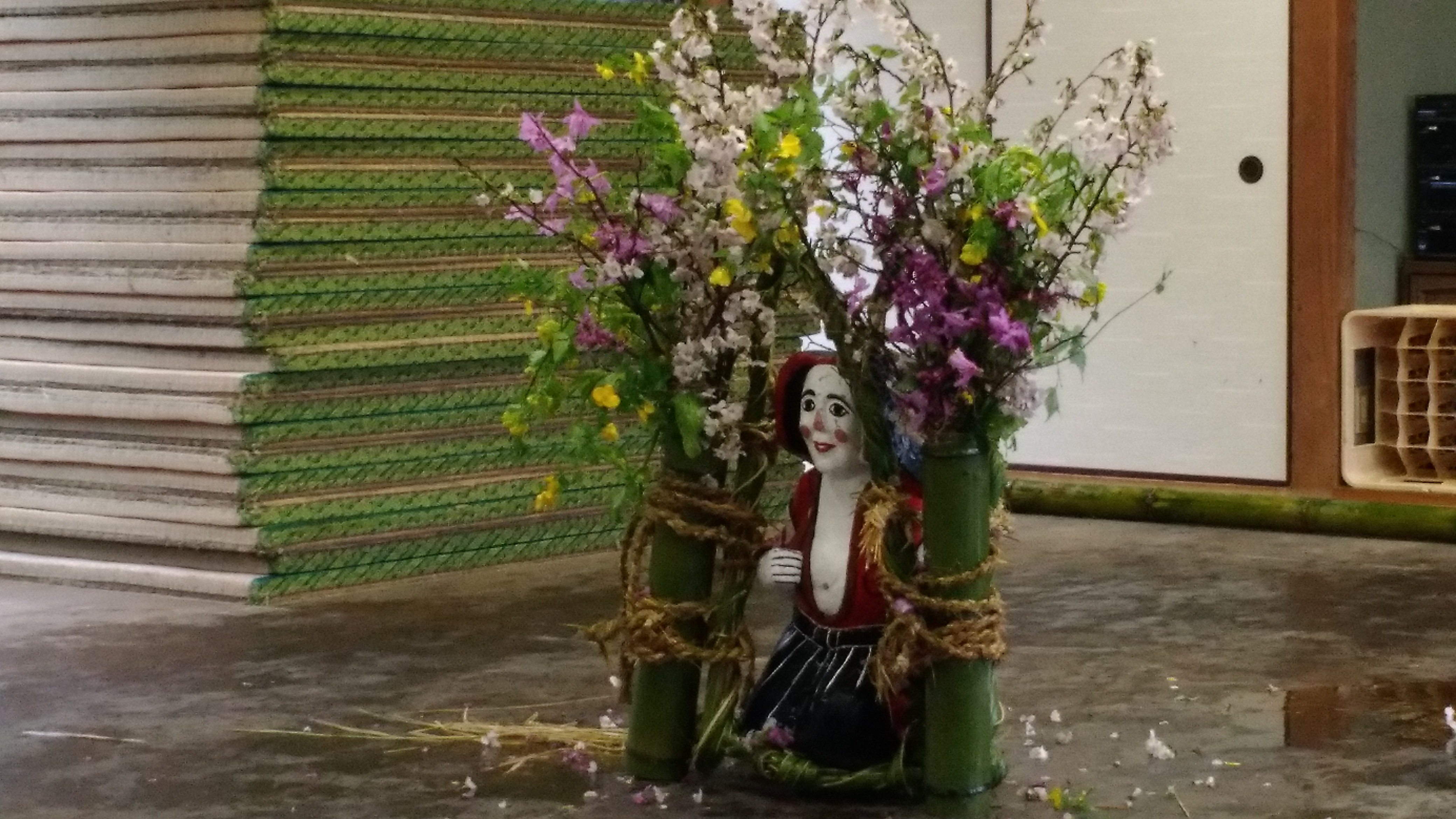 公民館の広間の片側は畳をあげて板の間にして待っています。