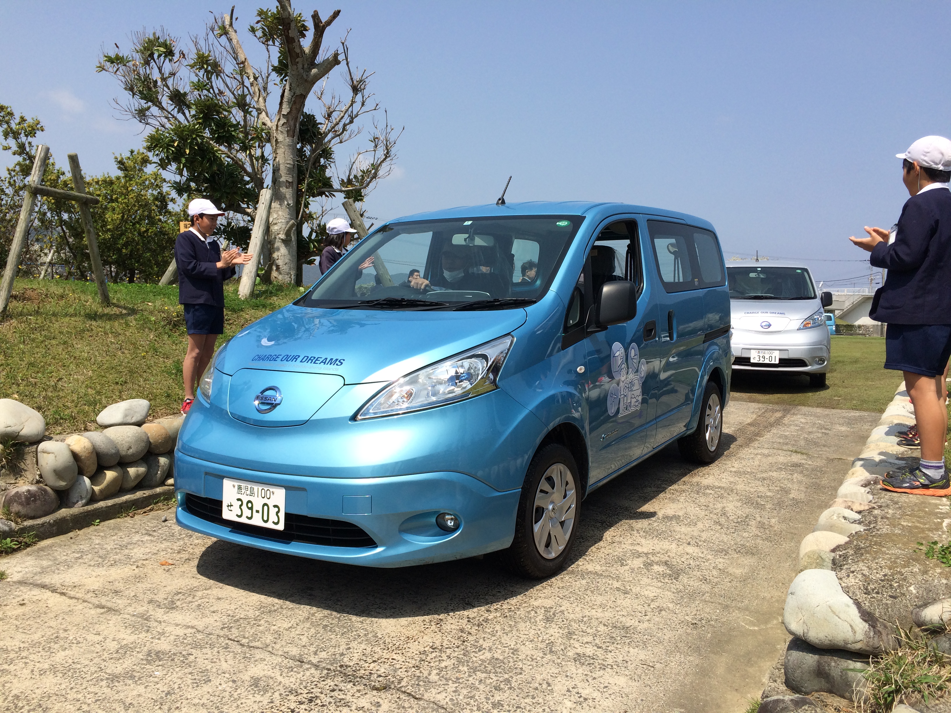 薩摩川内市と日産自動車株式会社・住友商事株式会社の連携で、甑島を舞台とした「みらいの島」共同プロジェクトを立ち上げ、今回上甑島へ電気自動車(e-NV200)を40台導入。そのお披露目が4月12日行われました。IMG_2502