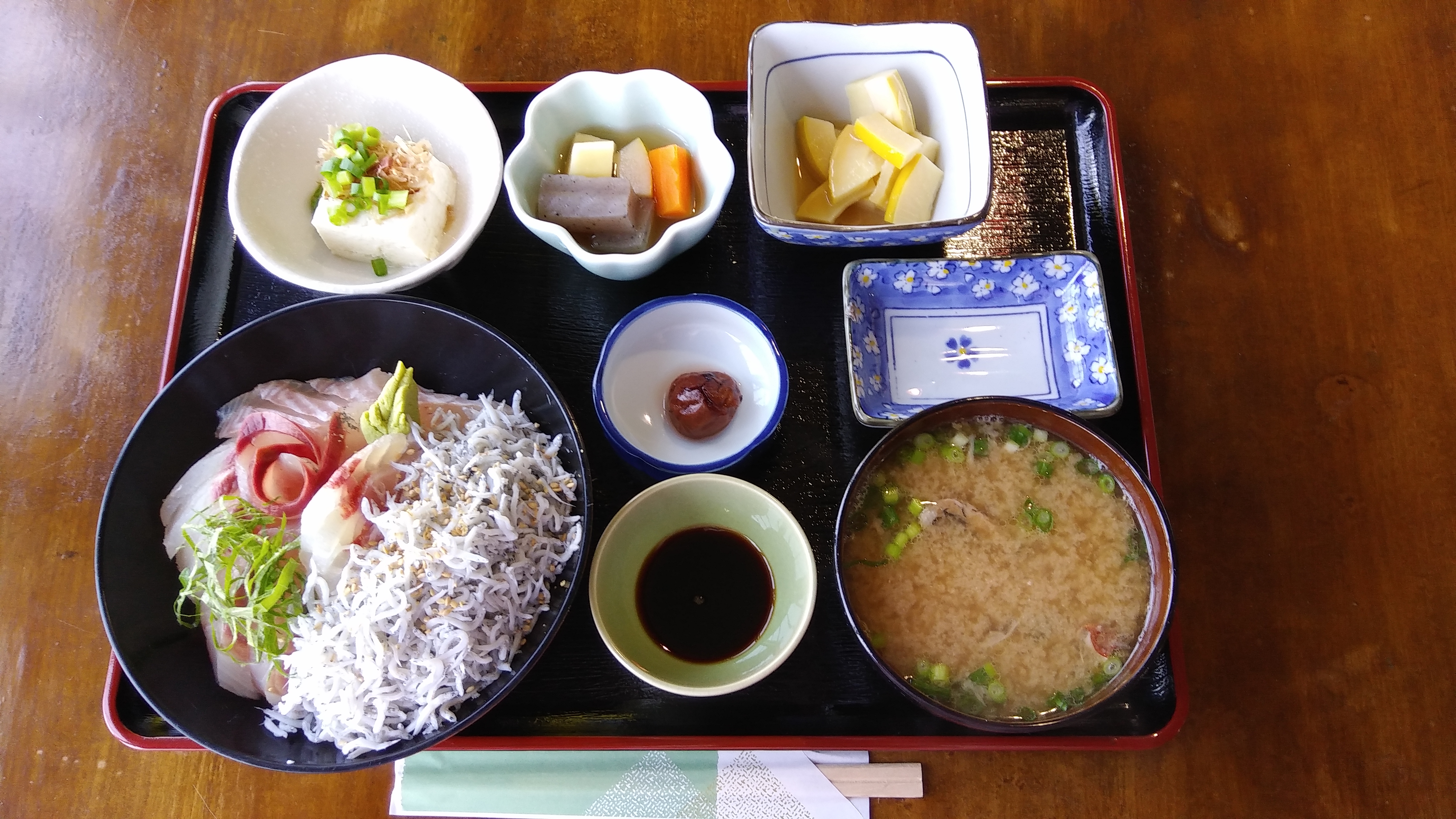 どんぶりいっぱいにしらすと刺身が半分ずつ乗ったとても豪華なメニューです!